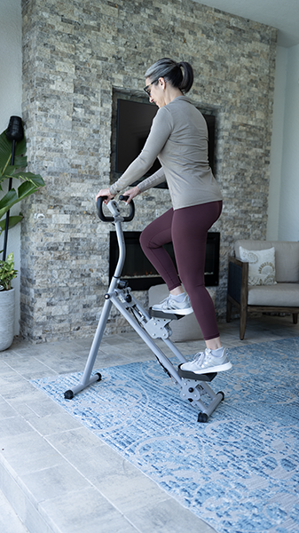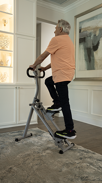 Step Climber е създаден за реални хора с реален живот – независимо дали съчетаваш работа, семейство или просто търсиш ефективен начин да останеш активен, без да напускаш дома си. Благодарение на технологията OmniGlide™, уредът предлага пълноценна тренировка за цялото тяло, която зарежда с енергия, вместо да изтощава – без натоварване на ставите, без шум и без обемна конструкция.